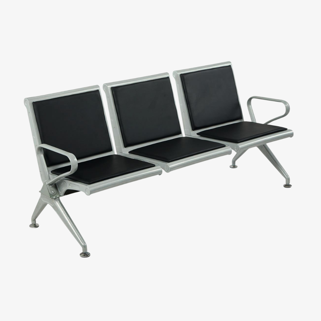 Banc d’accueil 3 places – Siège de salle d’attente en métal avec coussins