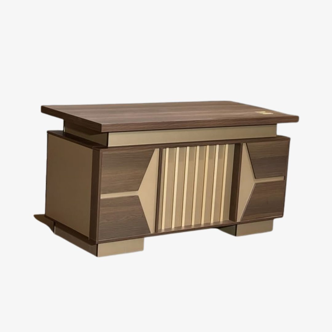 Bureau de direction moderne finition bois avec panneaux décoratifs géométriques
