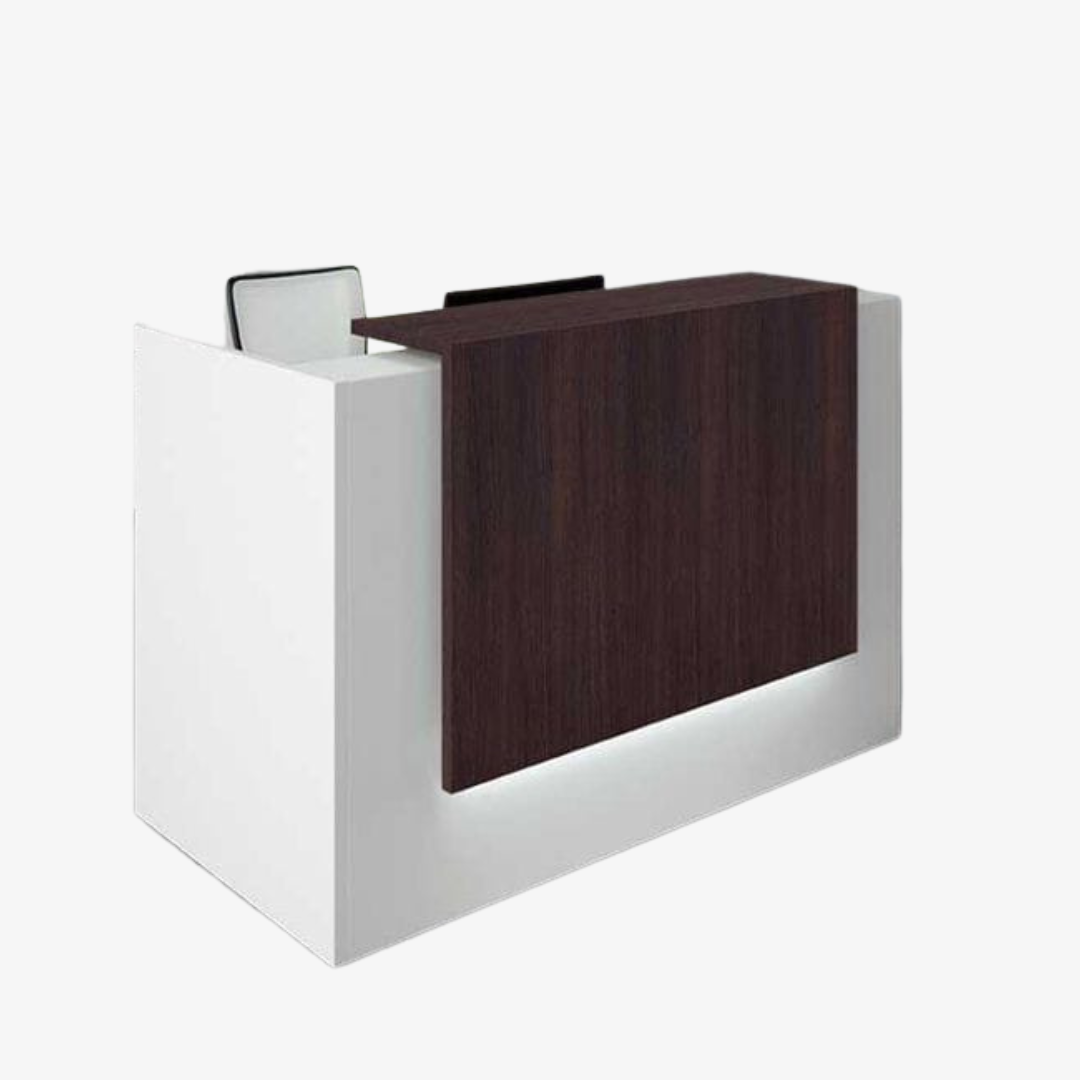 Bureau de direction moderne bois foncé et beige avec plateau arrondi