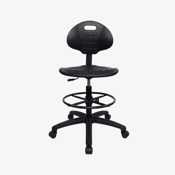 Tabouret TULIP sans dossier avec repose pied chromé et branche PVC